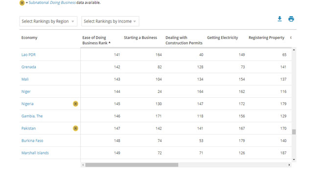 The report indicated that Nigeria had moved up by 24 points from the 169th position in the 2017 ranking and also the 170th position in the 2016 ranking to 145 in the World Bank’s 2018 report.